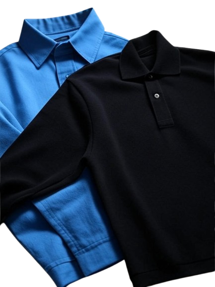 Pickup and wash service for shirts or polos, with drying, ironing, folding, and home delivery.